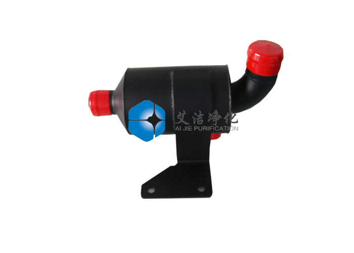 艾潔凈化生產(chǎn)的旋風(fēng)式油氣分離器是讓氣液混合氣經(jīng)過切向進氣道或是螺旋進氣道進入分離器內(nèi),使混合氣在分離器內(nèi)旋轉(zhuǎn)運動,以此產(chǎn)生離心力來實現(xiàn)油滴的分離,它的分離機理與主動離心式油氣分離器相同,只是不需外界提供動力。